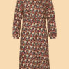 Modellen er EtOrchid med overdel, der sidder flot om barm og talje, og underdel skåret med vidde og flow. Ærmerne er 7/8 lange og kjolen har bindebælte, som kan bindes bagpå eller i siden – eller det bruges som hårbånd.