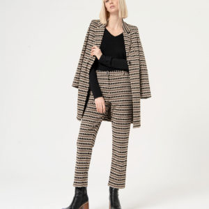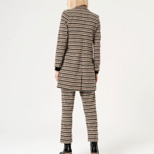 Flot klassisk spadsere blazerjakke i sort,brun og beige med god stræk. Jakken har knaplukning foran og flot revers samt lommer i sidesøm
