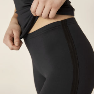 Lækker åndbar leggings i en skøn strækbar kvalitet og pasform med sort gallon-stribe i siden. Længden er 3/4.