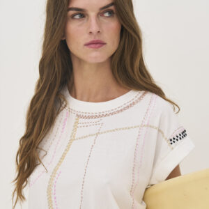 Denne top er en videreudvikling af den åndbare  populære basistop, som nu har fået en dekotativ elastisk bånd syet på ryggen. Taber ikke farve eller facon og er den mest solgte top overhovedet.