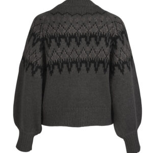 Lækker blød strik i et klassisk mønster i en smuk farvekombination, der giver et varmt og stilfuldt udtryk. Modellen har rund hals og lange, let ballonformede ærmer med brede ribkanter, som tilfører volumen og karakter. Den bløde kvalitet gør den både behagelig og velegnet til sæsonens lag-på-lag looks.