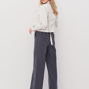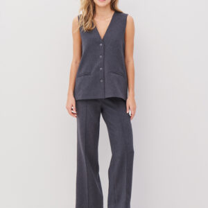 Super flot klassisk og stilren buks, der bare falder så flot. Buksen har stukket pressefold, der er lommer i siden og elastiklinning bagpå, hvilket giver en behagelig pasform. bukserne lukkes med to asymmetrisk placerede knapper, der tilfører et moderne twist. Det let melerede materiale understøtter det elegante look uden at virke stift.