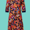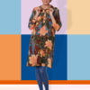 Lang kjole med flot flow i skørt og aftagelig bindebånd i skønne skønne farver. Kjolen er skåret under brystet i let buet facon med fine læg som brystindsnit. Elastik i ryggen som gør at kjolen sidder perfekt. Ærmerne er vide med elastik kant forneden samt draperet effekt op langs ærmet. Brug kjolen til hverdag eller fest – den kan det hele 🙂