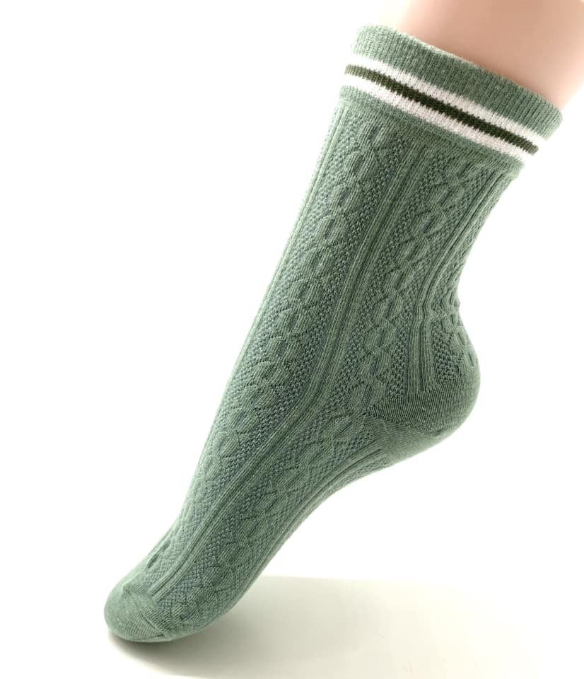 Ankelsok med kabel mønster og kontrast farver
