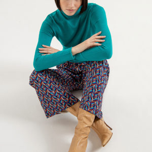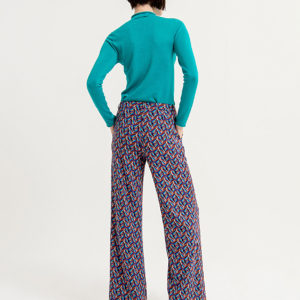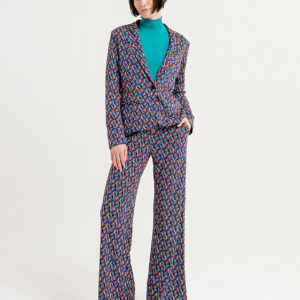 Den skønneste bløde buks i rigtig 70ér print med god stræk og perfekt pasform. Bukserne har ” Boot cut”, skrålommer og bælterstropper samt en knaplukning med lynlås foran. Style den med de matchende blazer for et sofisticeret udtryk.