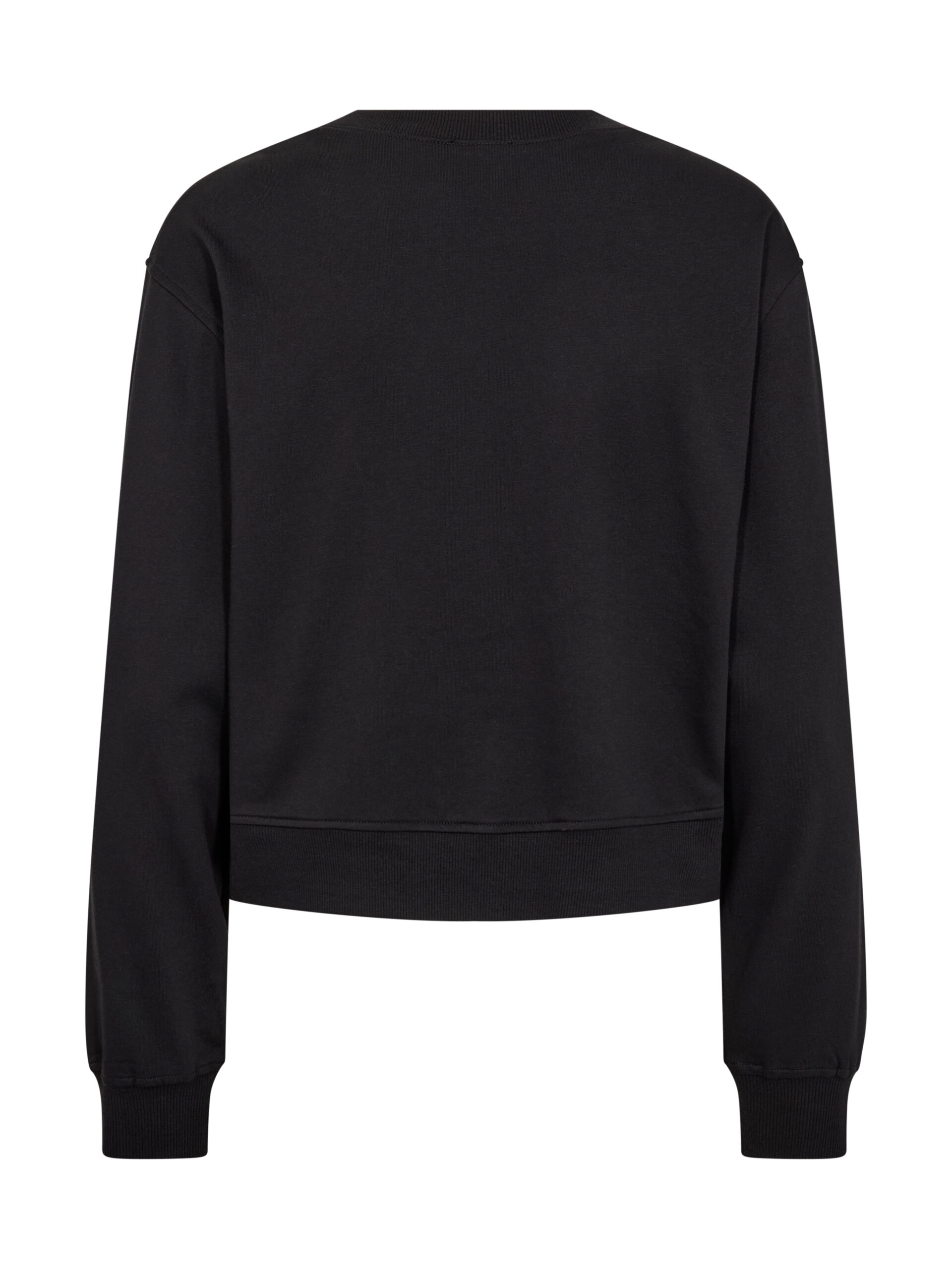 Sweatshirt med sporty referencer og karakterfulde detaljer med et afslappet snit med rund hals, lange ærmer og et rent bagstykke, som giver kontrast til det dekorative frontdesign. På forsiden ses store teksturdetaljer i form af påsyede bogstaver og tal samt en dekorativ skrå lynlås.