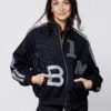 Så er college jakken kommet 🙂 iøjnefaldende oversized jakke, der kombinerer et sporty snit med markante bogstav- og taldetaljer. De dekorative elementer foran og bagpå giver jakken karakter, mens ribkanter og brede skuldre skaber en afslappet og komfortabel stil. Gennemgående lynlås og striber langs ærmerne fuldender det moderne look.