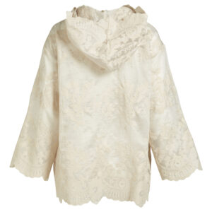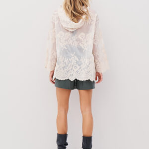 Så fin en gennemknappet blonde cardigan med hætte og perlemorsknapper og de flotteste afsluttede feminine kanter.