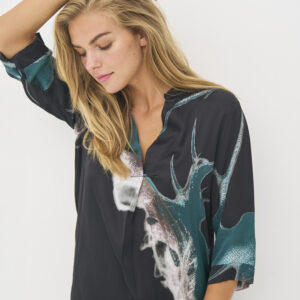 Denne tunika er fra Nü´s kollektion “Temptation” hvor der bliver kræset ekstra meget for design detaljerne og materiale sammensætningen, og der produceres kun få stk. af hver styles.  Det her er “creme de la creme” hvis du elsker anderledes og spændende tøj.
