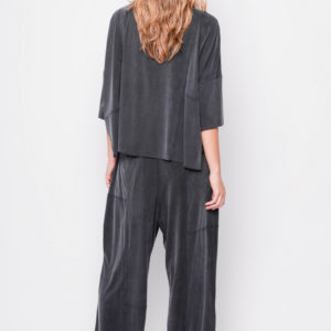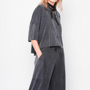 Boheme er skønt, og den skønne kvalitet gør det perfekt. Modellen er oversize, med spændende skæringer til bred dropshoulder og med bagstykket længere end forside. Knaplukning foran, og med rå afslutninger på kanter. Bredden af blusen giver spidser, der dypper i sider.