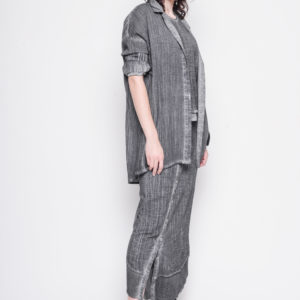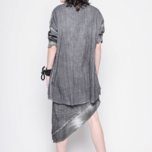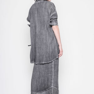 Lang skjortebluse i en vidunderlig let og luftig bomuld, som med fordel kan bruges som her på billedet som jakke. Blusen er meget rummelig og gennemknappet med dekorative metalknapper og har lille krave. Modellen er rundskåret og længere bagtil. Hver enkel bluse er unik i printet og kan variere i farvenuancer.
