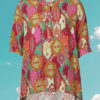 Let og fin top i dejlige orange nuancer. Modellen har V-hals for og bag. Brug den til hverdag eller fest, til jeans eller nederdel.