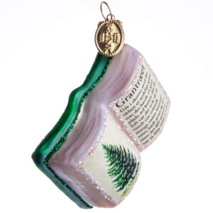 Bog i flot grøn med eventyret Grantræet af H.C. Andersen til juletræet.