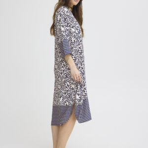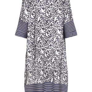 Let og luftig tunika med V-hals og slidser i siderne. Halsudskæringen er lavet med “smock” elastik hele vejen rundt, dermed sidder den bare ekstra pænt.