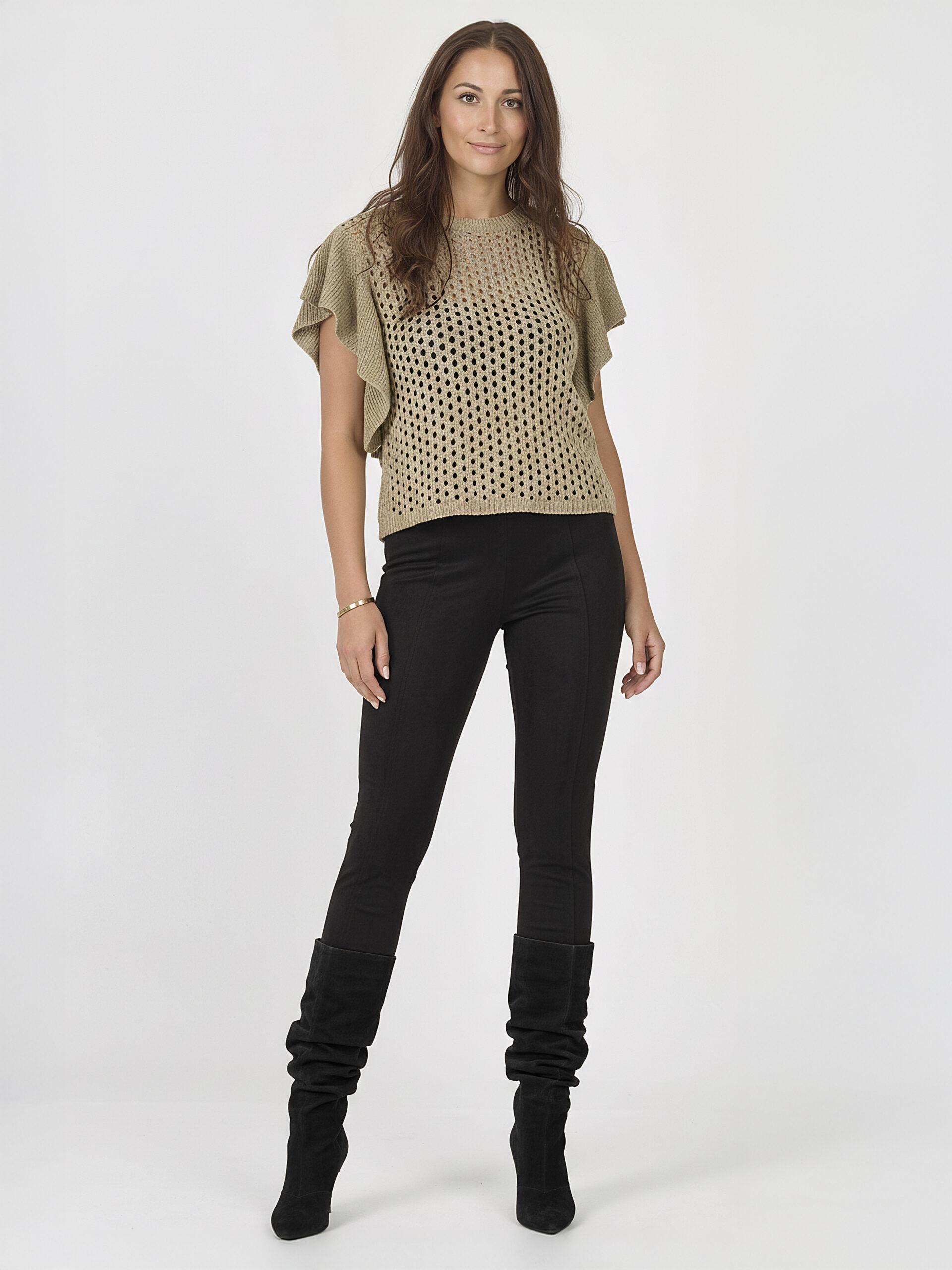Smart og flot imiteret ruskindskvalitet der giver et raffineret udseende. De er i en let strækbar kvalitet med en elastisk talje, der sørger for en dejlig komfort. Du kan bruge dem til at tilføje en flot detalje til dit outfit, og de kan styles med alt fra en statement t-shirt til en kjole.