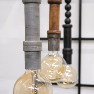 Dekorativ og skulpturel loftslampe fremstillet af trækugler. Fatningen er monteret i et lille stykke jernrør for enden af kuglerækken. En sjov og anderledes lampe som vil være et flot blikfang i din bolig eller i din butiksindretning. Lampen findes i 2 forskellige farver antiksort og natur. Hæng dem enkeltvis, flere sammen i samme farve eller et mix af de to forskellige farver. Lampen vil være smuk hvis du vælger en  LED-pære med en iøjefaldende glødetrådsstruktur.