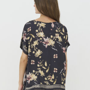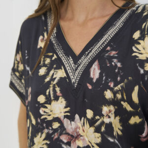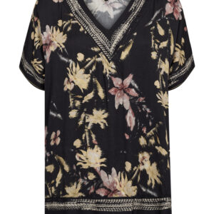 Bluse med afslappet pasform, korte ærmer og en blød V-udskæring. Modellen har slidser i begge sider og er dejlig blød og falder super flot på kroppen.