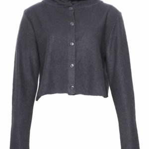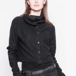 Super skøn kort cardigan i lækker purl strik. Modellen har ekstra høj hals, der kan foldes, som man vil. Og lukkes med metal knapper. Enkel og klædelig.