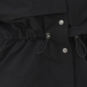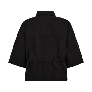Kort bluse eller jakke med korte ærmer der kan rulles op med trykknap. Modellen er gennemknappet og har snoretræk i taljen så du selv kan bestemme hvor tæt den skal sidde.