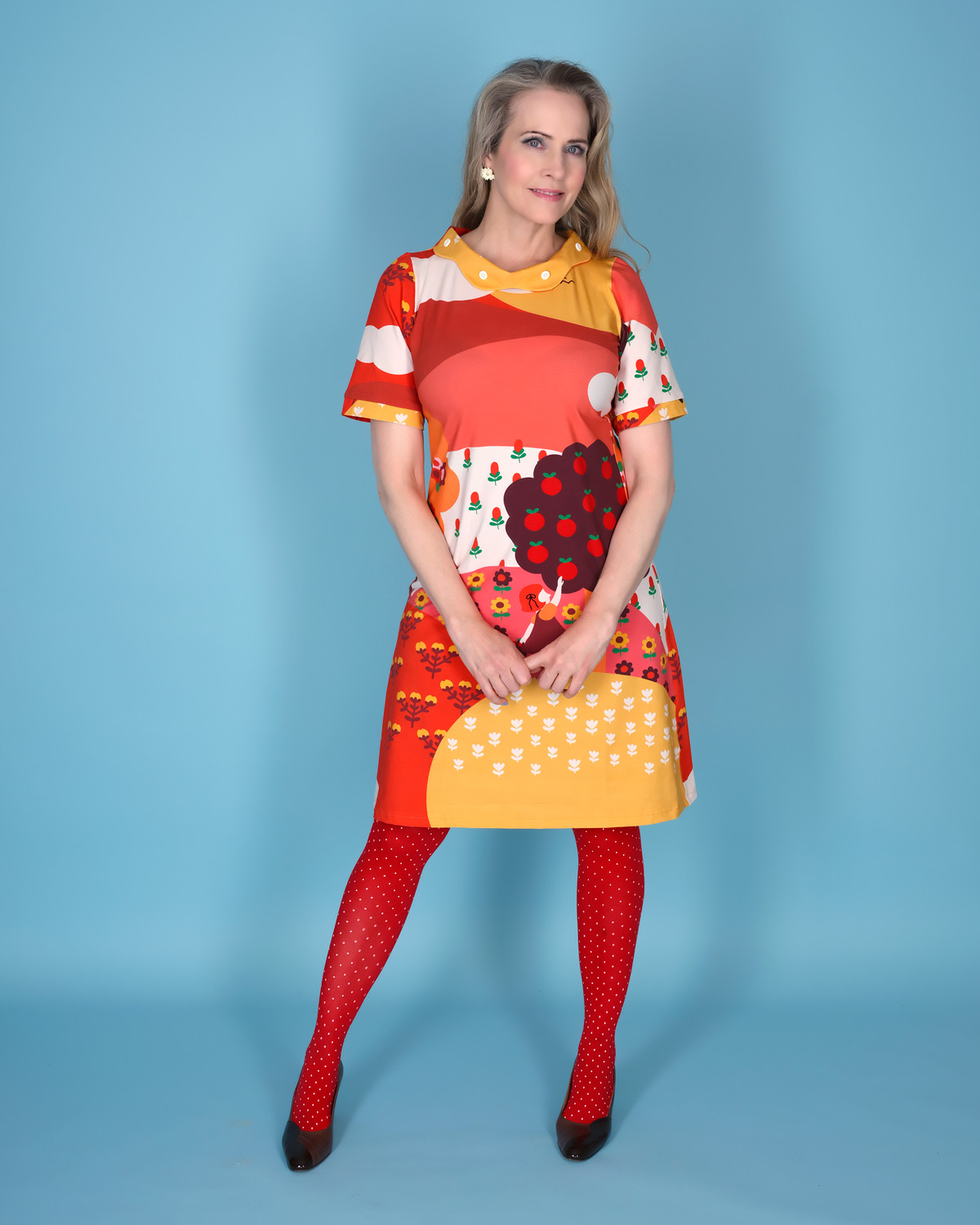 Modellen er i A-facon og har den flotteste ombukket krave som er lavet som en blomst.