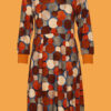 Smuk model fra duMilde – duKamma – i et flot blomsterprint. Modellen er skåret i taljen med glat panel foran. Det giver en flot barm, glat over mave og vidde til hofter og bag. Kjolen har lille slids i nakken som lukkes med knap og korte ærmer