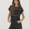 Style t-shirten med jeans eller en nederdel for et ubesværet hverdagslook, eller brug den under en jakke for et lag-på-lag udtryk.