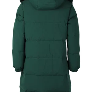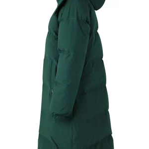 Det ydre materiale er tæt vævet polyester, med dun-blokerende membran på bagsiden og vandafvisende fluorfri coating på indersiden. Vinterjakken er coatet med Bionic Coating, og er helt fri for skadelige fluorcarboner. Vinterjakken er med RDS-certificerede dun, hvilket er din garanti for, at dyrene involveret har haft det godt. Frakken er vandafvisende og vindtæt, men ikke vandtæt.