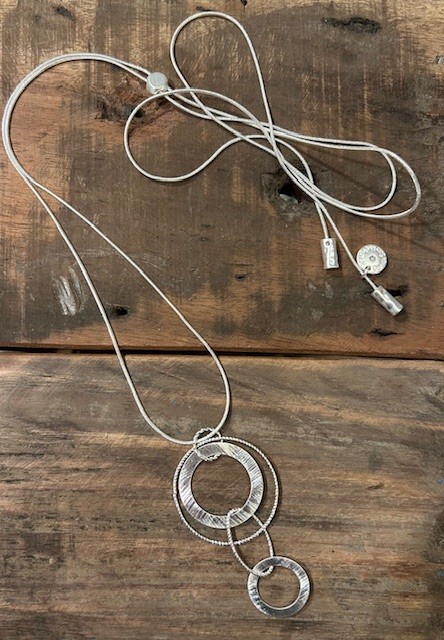 Længden kan indstilles ved at trække i en perle så smykket kan ligges i halsudskæringen hvis man ikke vil have det langt.