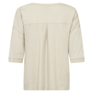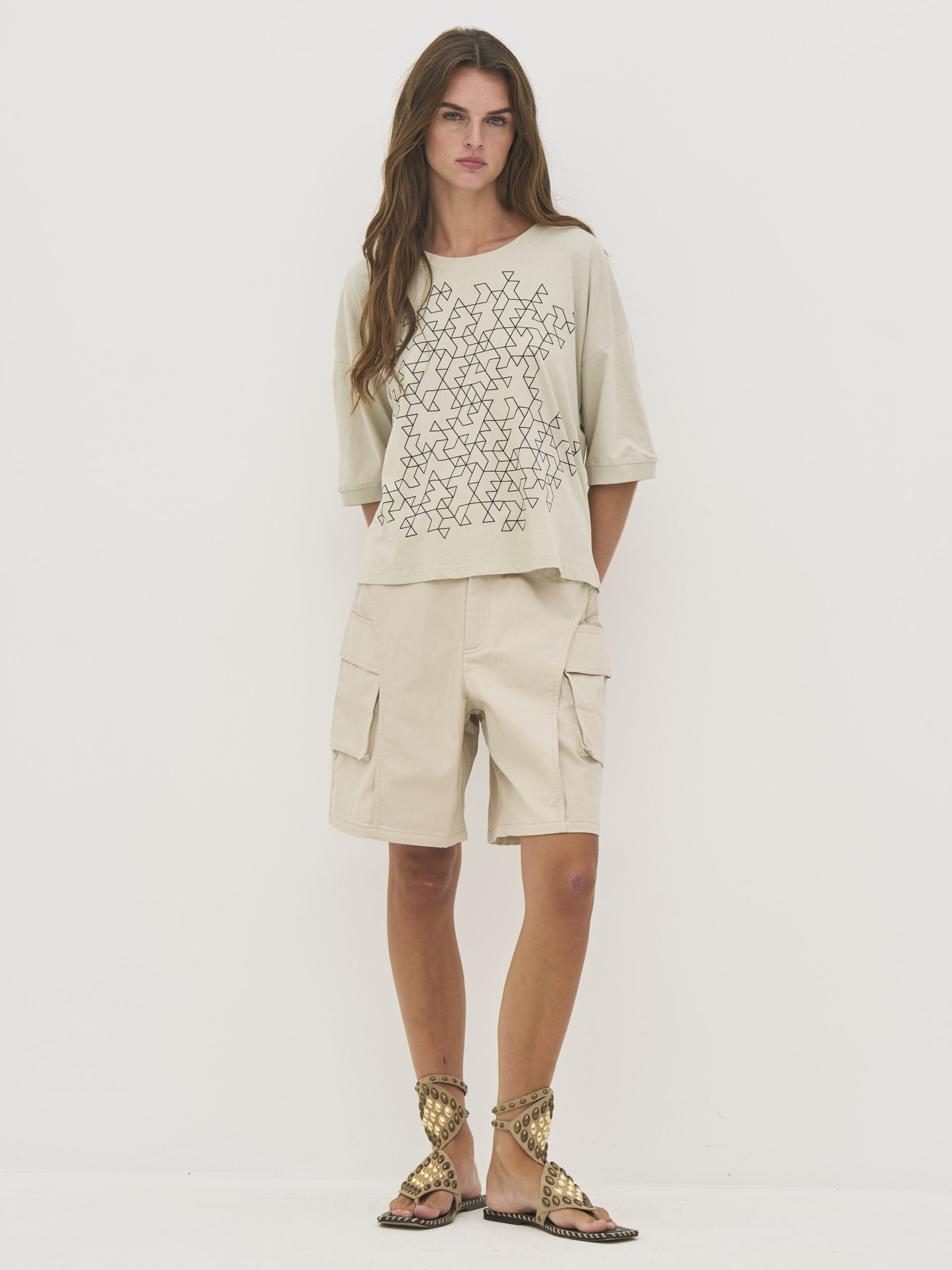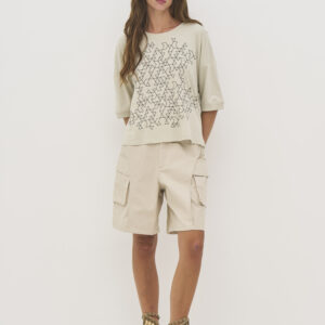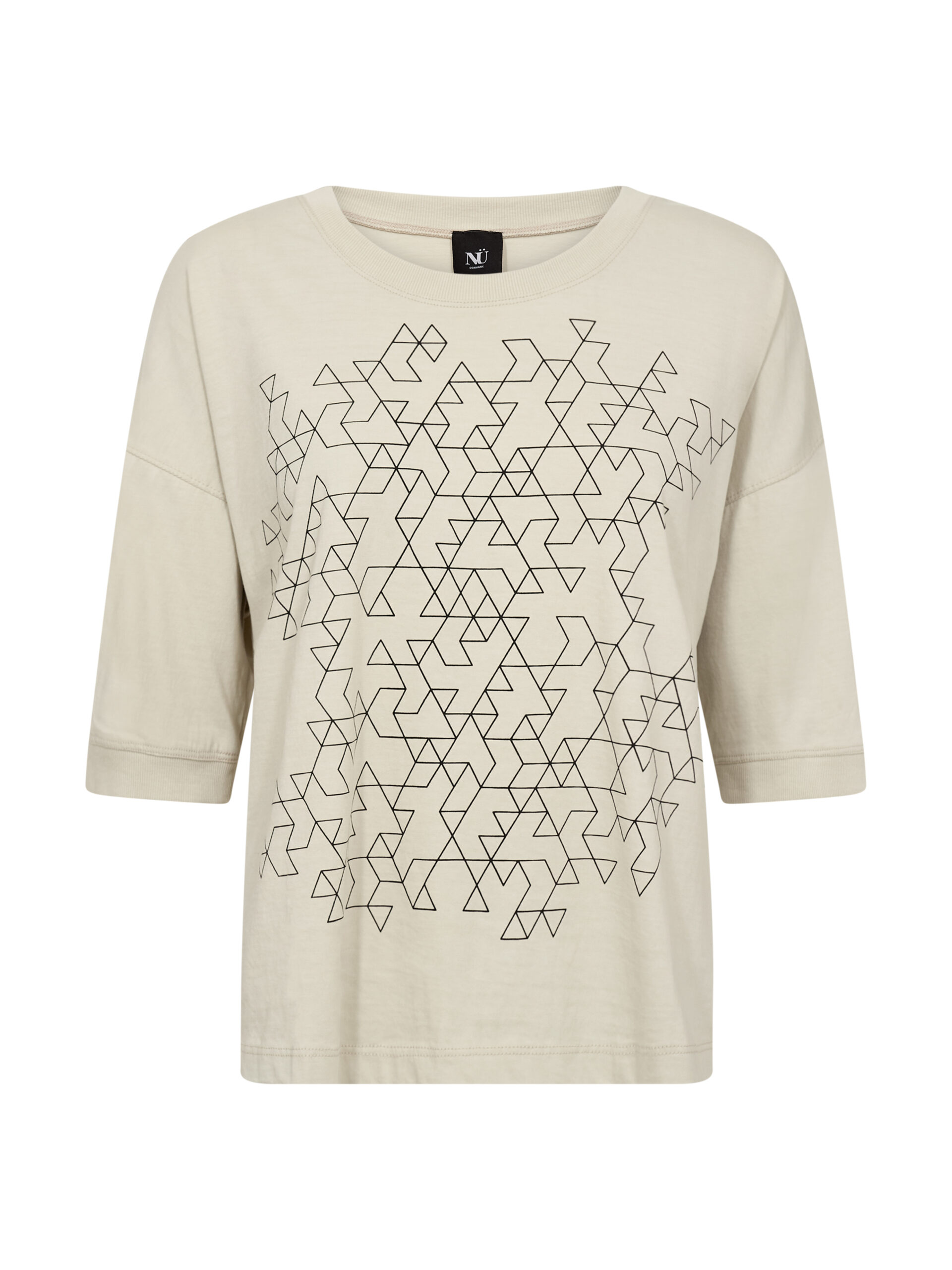 Lækker blød t-shirt i ren bomuld, som gør den ekstra behagelig og åndbar til hverdagsbrug. Den har en løs pasform med dropped shoulders, der skaber et ubesværet og moderne udtryk. Modellen har et grafisk print foran og rund hals med ribkant. Ribkanter er der ligeledes på ærmekanten.