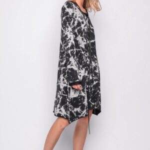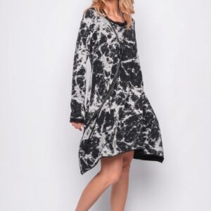 Kjole i flot grafisk print i A-facon med rå kantafslutninger og lommer i sidesøm.