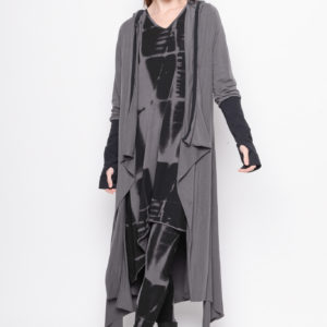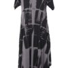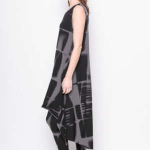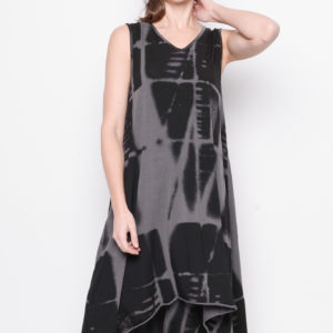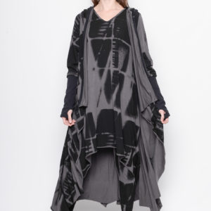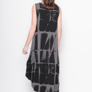 Super nice kjole i fantastisk snit og flot mix i farver grå og sort. Kjolen sidder til på overkrop og bliver så rundskåret i et smukt flow, der runder fint i siden.