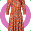 Dejlig blød kjole i et flot print i sort og grå/brune nuancer. Modellen har panel i sidesøm og mere længde bagpå. Ekstra lange ærmer gør det muligt med flotte draperinger/folder ved håndled.