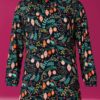 Skøn bluse i et flot sort/hvidt blomsterprint. Modellen har rund skjortekrave, stolpelukning med fine knapper. Bærestykket foran har let rynk ved skulder og læg i ryggen. Blusen er også super god udover en stropkjole eller t-shirt som kort jakke .