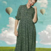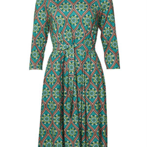Super flot kjole i A – facon i model duGitha, hvor kjolen sidder til over barm og falder blødt med mere rummelighed om hofter og mave, da der er 2 læg foran og bagpå. Modellen er i et skønt retro- print med små blomster og ved halsudskæringen er der en stor håndhæklet blomst. Der medfølger et aftageligt bælte som også kan bruges som hårbånd. Mega flot kjole – Der er et væld af farver i printet og det er dermed så nemt at komibinere strømpebukser til.