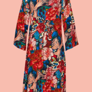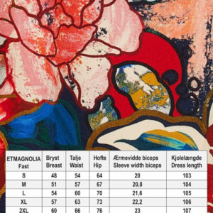 Det skønneste lette og feminine print på denne fine duMilde etc.kjole. Modellen bliver samlet under barm med små læg. Lukkes i ryggen med lille knap og har denne gang de skønneste trompetærmer. Kjolen har rundhals, lommer i sidesøm og “dypper” elegant i siderne. Printet er et væld af blomster i alle mulige farver som gør at det er super nemt at tilsætte farver.