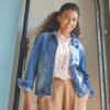 Hver jakke er en unika, da den er fremstillet af recycled jeans. Nogle gange er det lyse jeans der dominerer mest og der kan være flere sammensætninger end vist på billedet. Vi anbefaler at gå en str. ned
