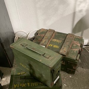 Gammel original ammunitionstrækasse som stadig er så fin med skrift og hængsler. Indvendig er der 2 rum.