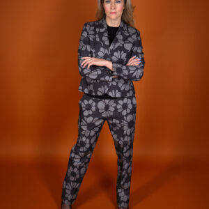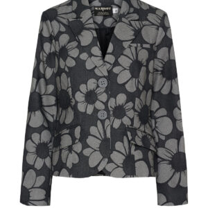 Flot og elegant figursyet jakke med skulderpuder i grå nuancer med blomsterprint. Jakken har opadgående revers med knaplukning samt pyntelommer med lommeklap. Du kan kombinere denne blazer med buksen for et sofistikeret udtryk eller med en jeans og du vil med det samme være flot påklædt.