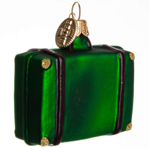 Kuffert med teksten At rejse er at leve – inspireret at H.C. Andersen. Forestil dig denne flotte kuffert på dit juletræ, side om side med dine yndlings julekugler fra Brink Nordic.