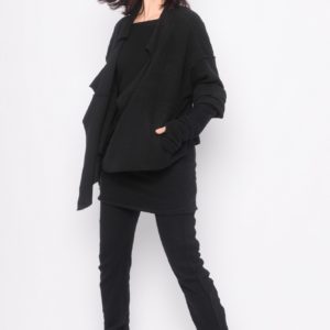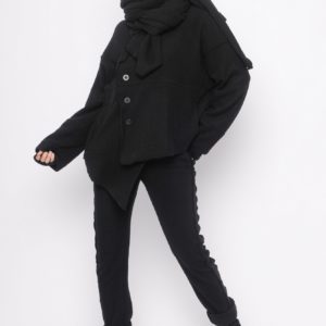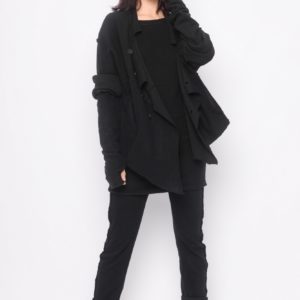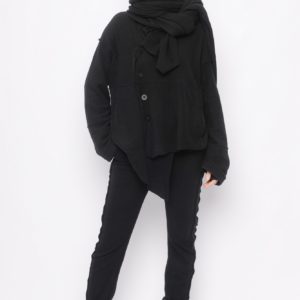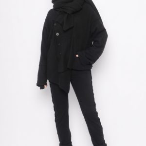 Super flot asymetrisk uldjakke med metalknapper i den dejligste bløde uld, og med skønne designdetaljer som syninger på tværs.