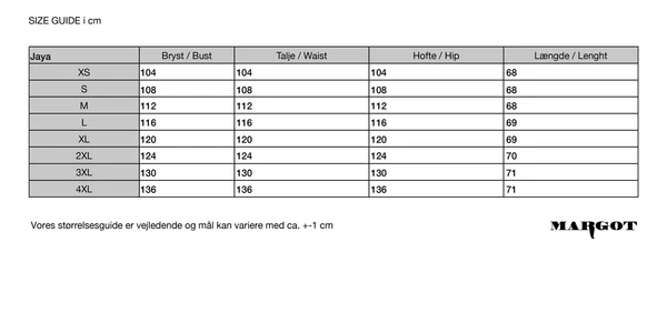 Denne model er meget rummelig og har en løs faldende krave og pasform. Ideel til nederdele og bukser som hurtigt pifter dit outfit op. Vi anbefaler at gå 1 str. ned i forhold til hvad du plejer pga rummeligheden.