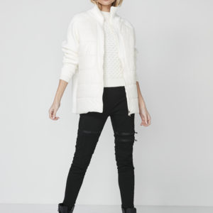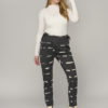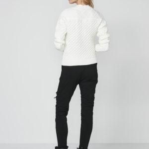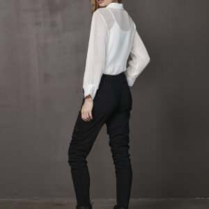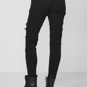 Super buks med flotte detaljer som rå lynlåse på lår, skrå lommer og drapering omkring knæ. Buksen er lidt baggy foran og har snydelommer bagpå samt lynlås i siden.