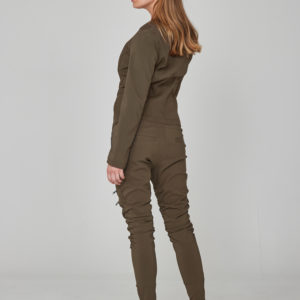 Super buks med flotte detaljer som rå lynlåse på lår, skrå lommer og drapering omkring knæ. Buksen er lidt baggy foran og har snydelommer bagpå samt lynlås i siden.
