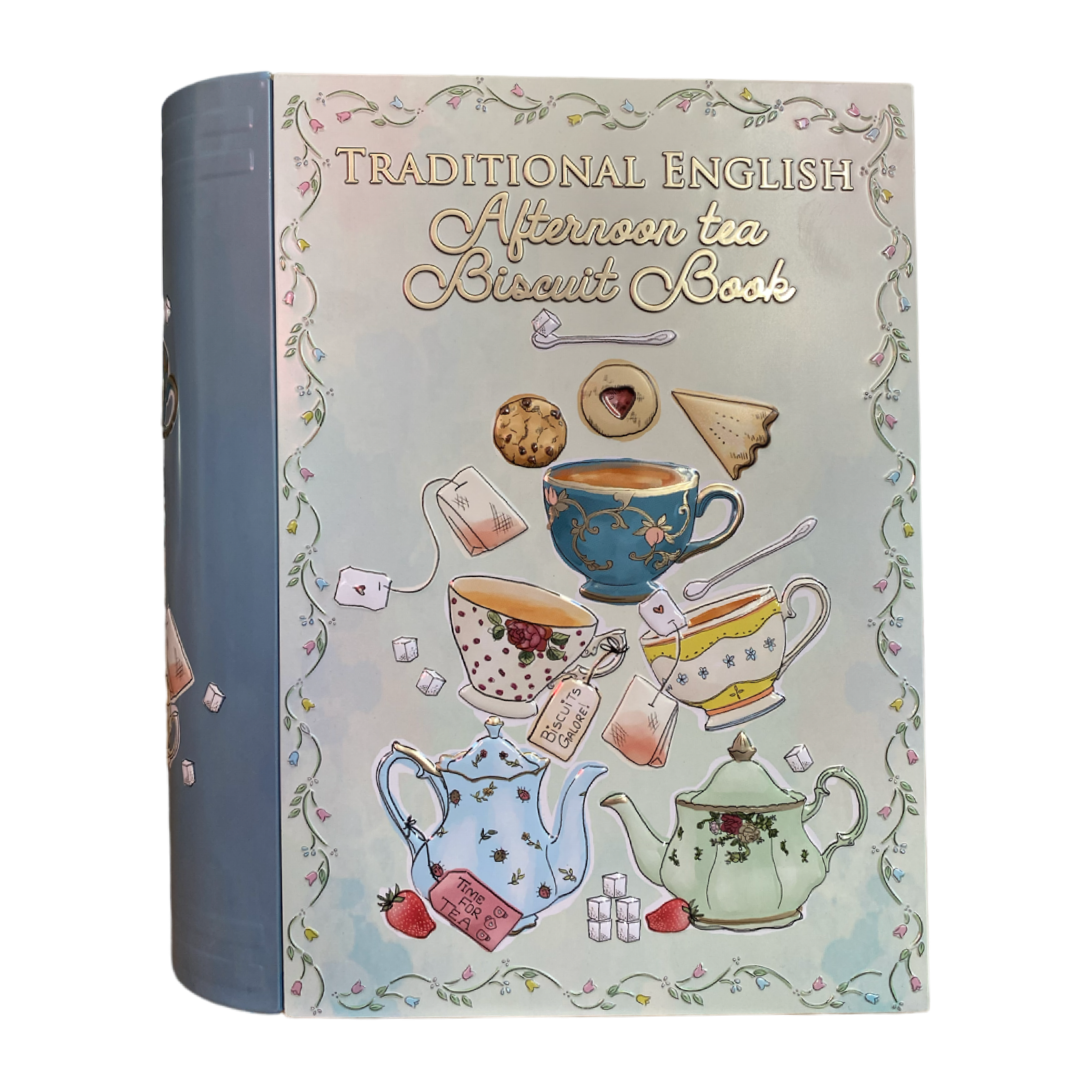 Kagedåse Tea og småkagebog er til småkager, eller lækker te i forskellige smagsretninger.Kagedåsen er udformet som en bog, og holdt i nedtonede blå nuancer.