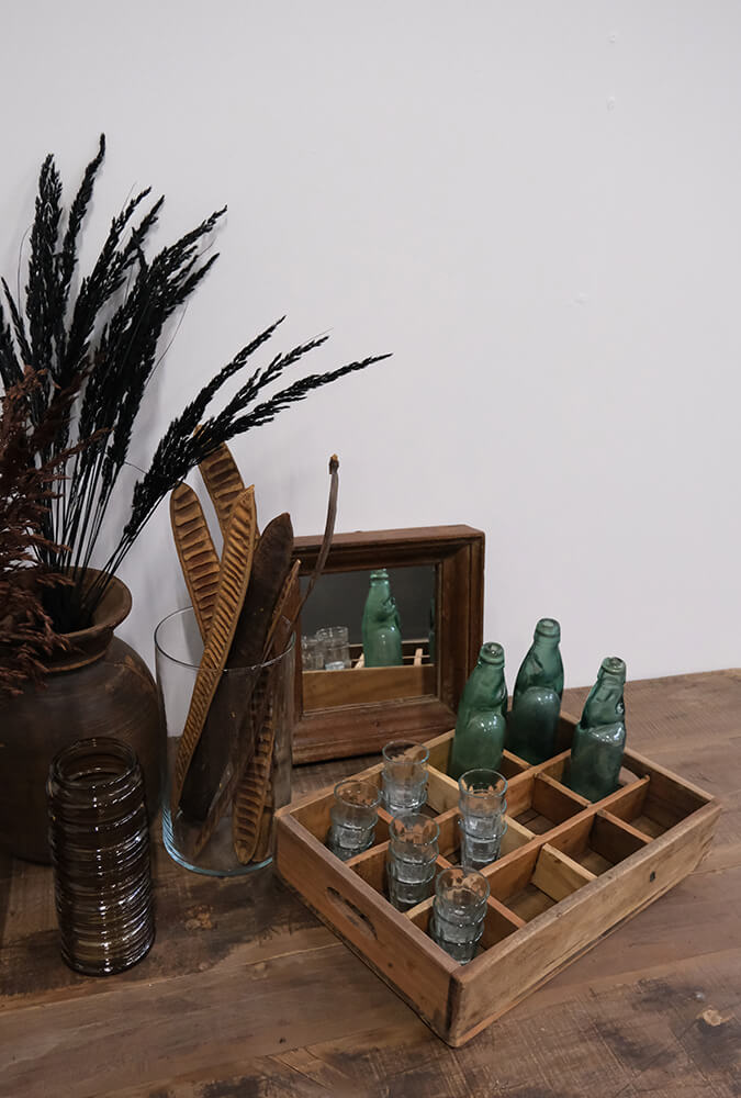 Gammel trækasse med rum og den flotteste patina. Brug kassen til at holde styr på dit sy-grej, dine frø i drivhuset, eller dine nipsting til gaveindpakning eller juledekorationer. Du kan også hænge den på væggen som en helt unik sættekasse eller bruge den i din smykkebutik, til udstilling af smykker eller sten. Med løs indsats. Kun fantasien sætter grænser. Bemærk at størrelse af kassen kan variere.lidt.
