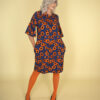 Kjole med prikker i let og lækker kvalitet. Modellen har skjortekrave, brystlommer, lille læg bagpå og er gennemknappet. Forneden er kjolen rundet. Kan også bruges åben til bukser og bluse. Kjolen er også fin med bælte.