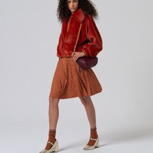 Denne nederdel er mønsteret i Toffee-farve som er en varm, lys brun farve, der minder om farven på toffee slik, som en blød karamel.