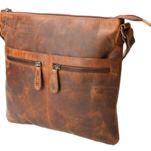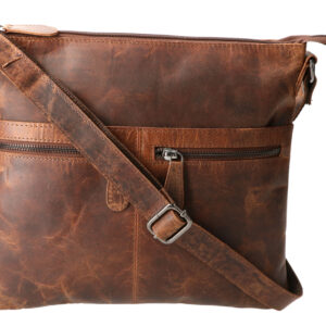 Praktisk og flot lædertaske med indstillelig skulderrem.