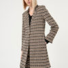 Lang lækker jakke i let ulden kvalitet i et super flot print i nuancerne bordeaux, hindbær, beige og orange. Jakken har bredt revers, lommer i sidesøm og slids bag på og lukkes med 3 bordeaux farvede knapper.