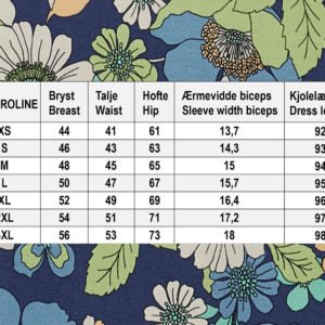 Kanon flot kjole i A – facon i den meget efterspurgte “Ducaroline-model” hvor kjolen sidder til over barm og falder blødt om hofter og mave. Modellen er i et skønt blomsterprint med rundhals og lommer i siden og det flotteste håndhæklet blomster broderi pryder i kjolen forneden i højre side. Mega flot kjole som er nem at kombinere mange forskellige farver til, som du kan se af vore forslag.